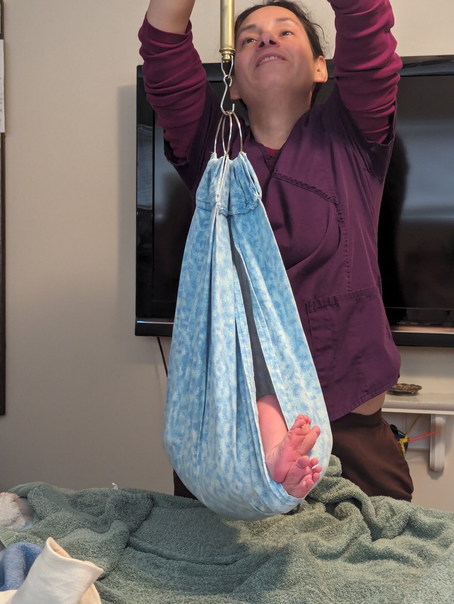 Loved his little toes peaking out while he was weighed for the first time!