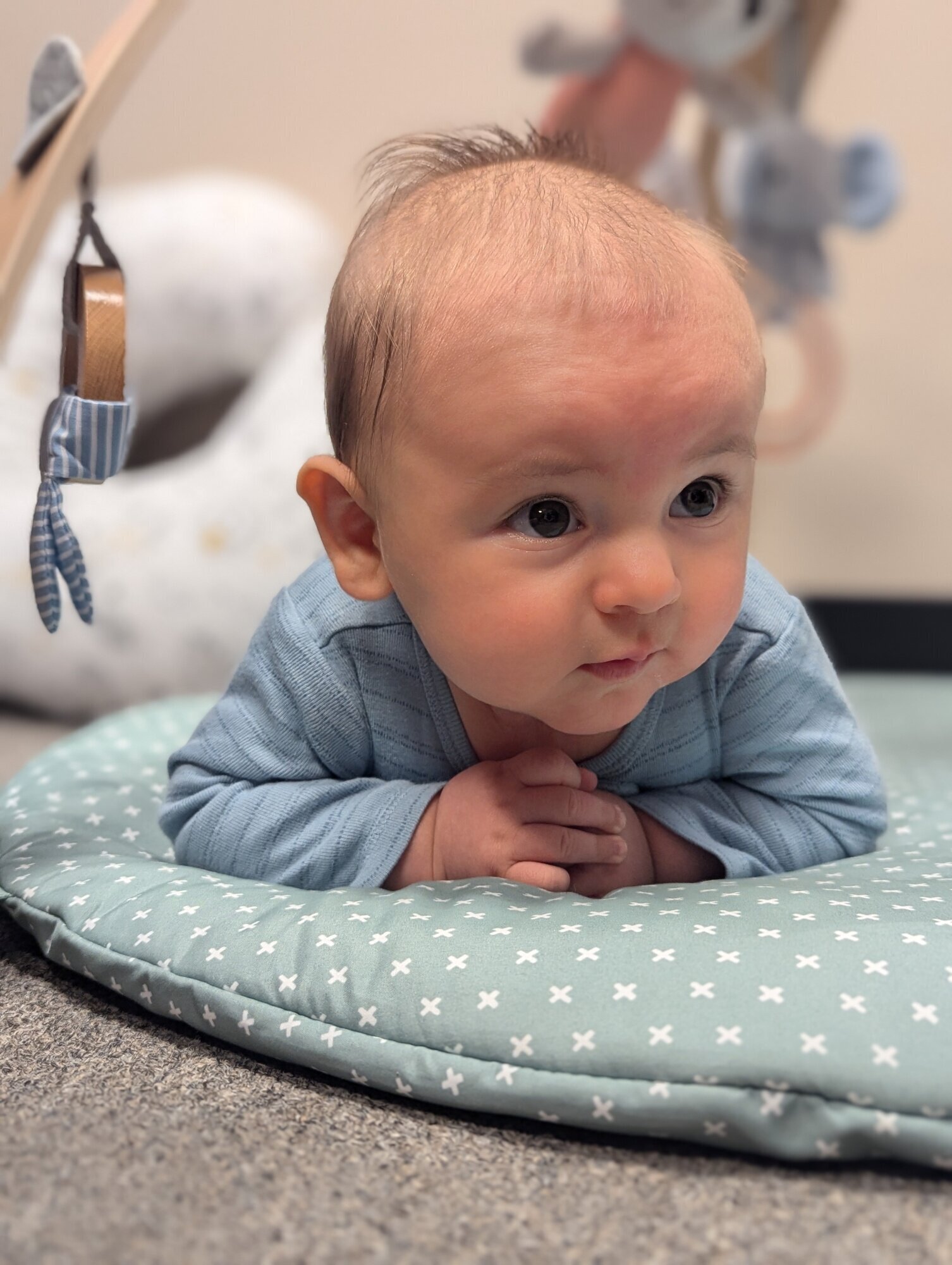 Some of Asher's favorite things right now are chomping on anything, especially his fingers, snuggling mom, and giggling at dad!
