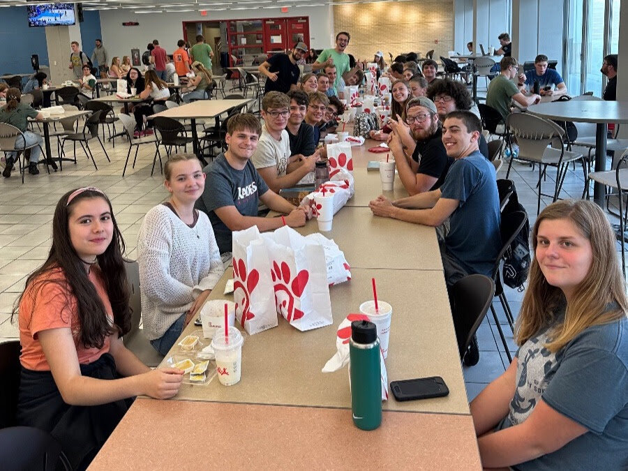 Our students pulled 14 tables together so we could all eat at the same table before large-group the first week of the semester