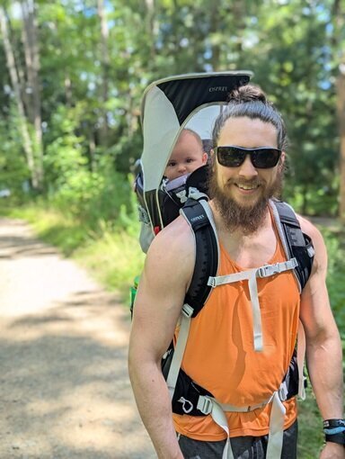 We went camping with TJ's family and Asher loved being in the hiking backpack. (right)